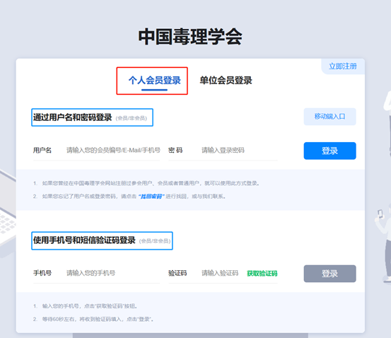 2.单位途径入会及个人途径入会的会员,需要打印个人会员证者,均选个人会员登录。