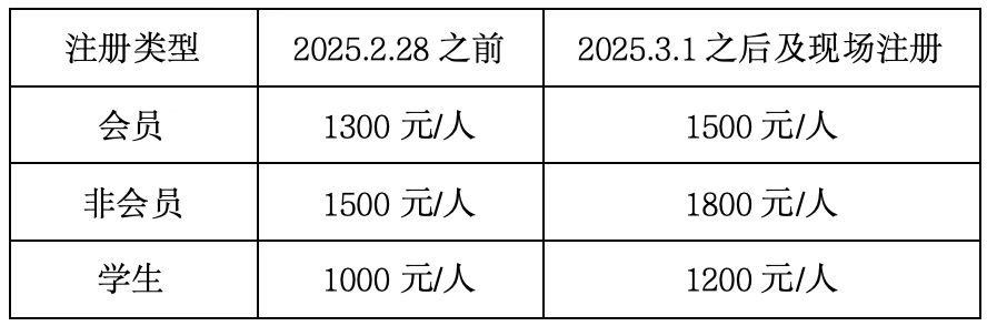 注:会议注册费包括会议资料和会议用餐。交通、住宿等由参会人员自理;会员注册时需出具会员证、电子会员证或单位相关证明;学生代表指博士生、硕士生和本科生,注册时需出具有效学生证或单位相关证明。