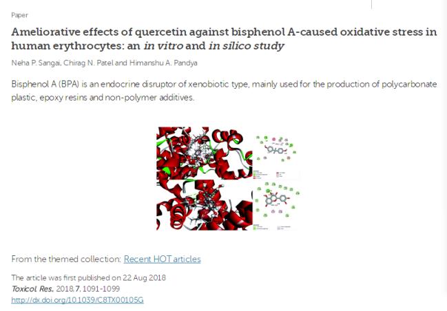 5.槲皮素可改善双酚A诱导的人红细胞氧化应激:体外及计算机模拟研究