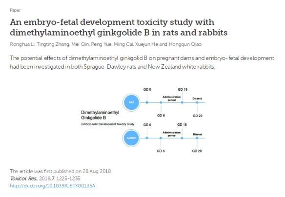 18.二甲氨基乙银杏内酯B对大鼠和兔的胚胎-胎仔发育毒性研究