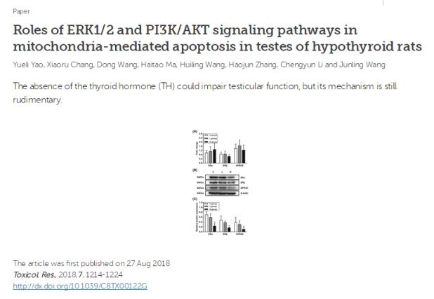 17.ERK1/2 和 PI3K/AKT信号通路在线粒体介导的甲状腺功能低下大鼠的睾丸细胞凋亡中的作用