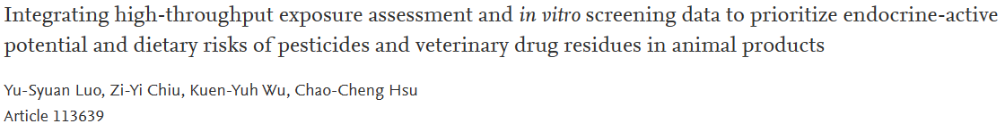 1. 整合高通量暴露数据与体外筛查数据以确定对动物源性食品中残留农药和兽药监管的优先级别