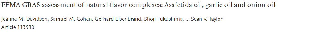1. 天然香料复合物的FEMA GRAS评估:阿魏油,大蒜油和洋葱油