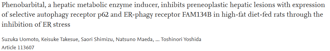 14. 苯巴比妥通过促进选择性自噬受体p62和内质网自噬受体FAM134B的表达抑制内质网应激,从而抑制高脂饮食大鼠的肝脏癌前病变