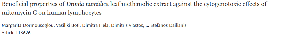 16. Drimia numidica叶的甲醇提取物抑制丝裂霉素C对人淋巴细胞的毒性作用