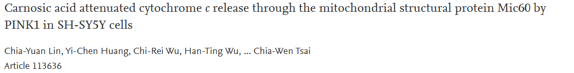 21. 鼠尾草酸通过促进PINK1激活线粒体结构蛋白Mic60以减弱SH-SY5Y细胞中的细胞色素c释放