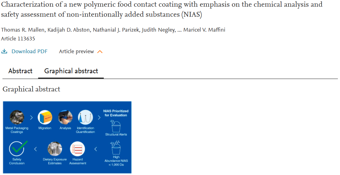28. 一种新型聚合的食品接触涂层物的表征:非有意添加物质(NIAS)的化学分析和安全性评估