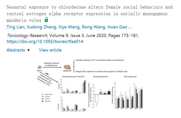 4. 新生暴露于十氯酮会改变一夫一妻制田鼠的雌性社交行为和中央雌激素α受体表达