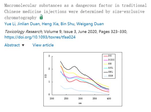 19. 体积排阻色谱法测定作为中药注射剂中危险因素的大分子物质