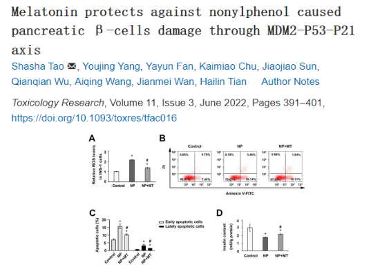1. 褪黑激素通过MDM2-P53-P21轴减轻壬基酚引起的胰腺 β 细胞损伤