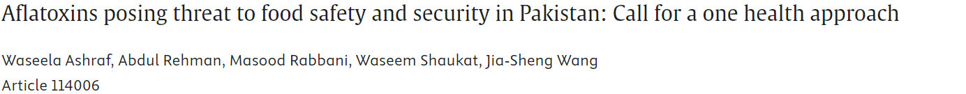 4. 黄曲霉毒素对巴基斯坦食品安全的威胁:呼吁“同一个健康”行动方针