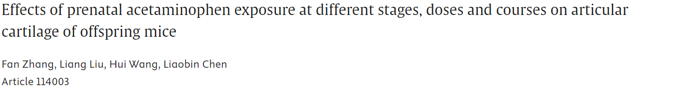 概述:构建小鼠模型探讨对乙酰氨基酚不同暴露时期、剂量和疗程对子代小鼠关节软骨发育毒性的影响,为妊娠期对乙酰氨基酚的安全用药提供指导。
