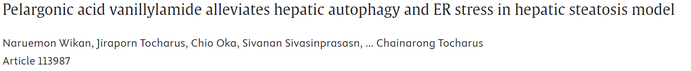 概述:分别在大鼠模型和HepG2细胞模型中证明N-香草基壬酰胺可通过抑制肝脏的细胞自噬和内质网应激缓解高脂饮食诱导的非酒精性脂肪肝。