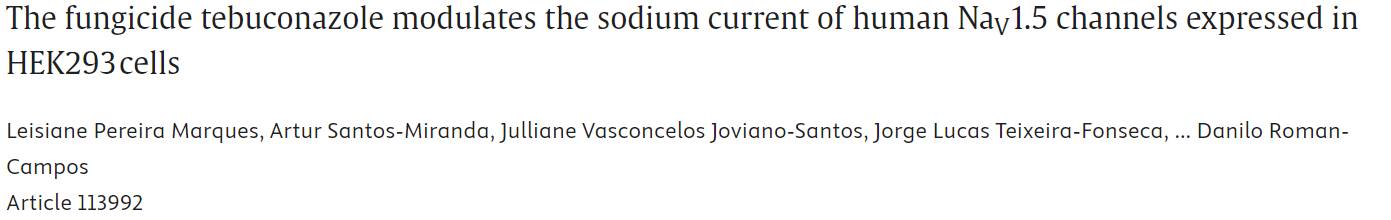 概述:在转染有人NaV1.5通道的HEK293细胞中证明杀菌剂戊唑醇以剂量和电压依赖的方式阻断钠离子流,诱导心脏毒性。