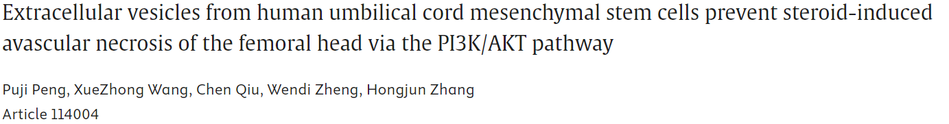 概述:基于股骨头坏死的大鼠模型发现,人脐带间充质干细胞来源的细胞外囊泡可通过激活PI3K/Akt通路缓解糖皮质激素诱导的股骨头缺血性坏死。
