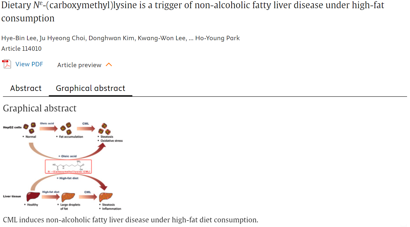 概述:构建体内体外模型,揭示高脂饮食可以通过膳食N ε - (羧甲基)赖氨酸促进肝脏氧化应激和脂肪变性,诱发非酒精性脂肪性肝病。