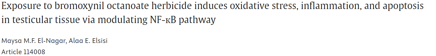 概述:在大鼠中发现辛酰溴苯腈除草剂以剂量依赖的方式促进睾丸组织氧化应激、炎症反应和细胞凋亡从而诱导睾丸毒性。