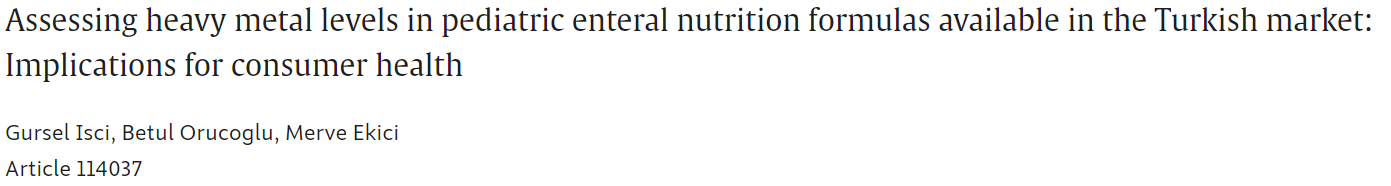 26. 评估土耳其市售儿科肠内营养配方的重金属水平:对消费者健康的影响