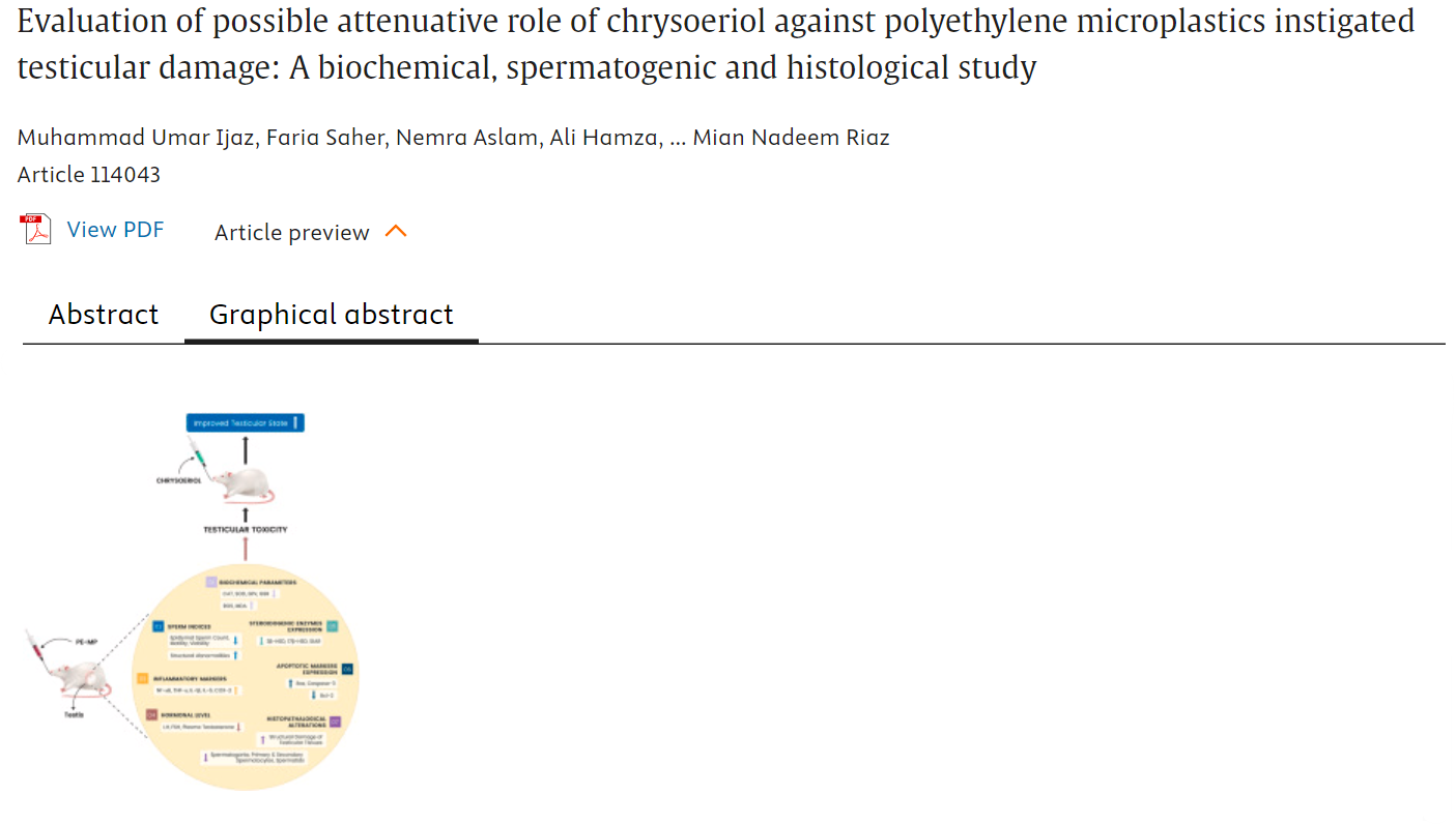 概述:聚乙烯微塑料可诱导大鼠睾丸生精功能障碍和组织结构损伤,金圣草黄素可通过抗凋亡、抗氧化和抗炎症作用缓解聚乙烯微塑料诱导的睾丸损伤。