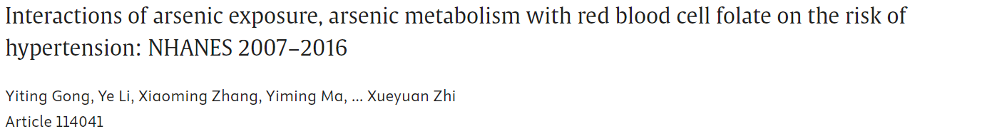 概述:基于2007-2016年美国国家卫生与营养检查调查数据发现,高尿砷、低尿二甲基胂酸和高红细胞叶酸可增加高血压发病风险。