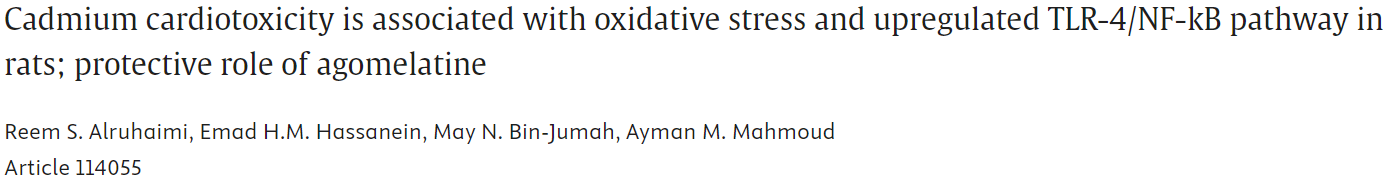 35. 阿戈美拉汀通过抑制氧化应激下调TLR - 4 / NF – kB信号通路缓解镉诱导的心脏毒性
