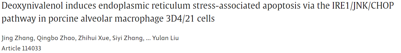 36. 脱氧雪腐镰刀菌烯醇通过激活IRE1 / JNK / CHOP通路诱导猪肺泡巨噬细胞发生内质网应激相关的凋亡