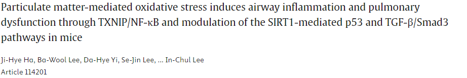 3.颗粒物通过激活TXNIP/NF–κB和SIRT1/p53/TGF-β/Smad3通路诱导小鼠气道炎症和肺功能障碍