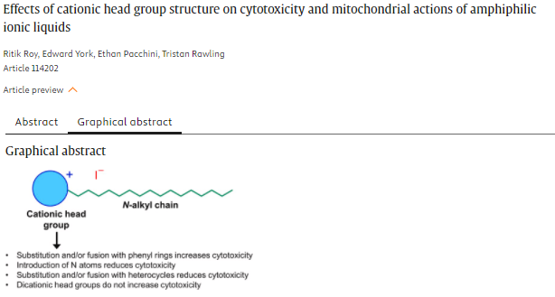 概述:本研究为阳离子头基结构对两亲性离子液体细胞毒性的影响提供了新的构效关系见解,结果显示更大更亲脂的头部基团会增加两亲性离子液体的细胞毒性。