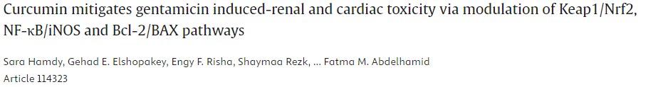 10.姜黄素通过激活Keap1 / Nrf2、NF - κ B / iNOS和Bcl - 2 / BAX通路减轻庆大霉素诱导的肾脏和心脏毒性