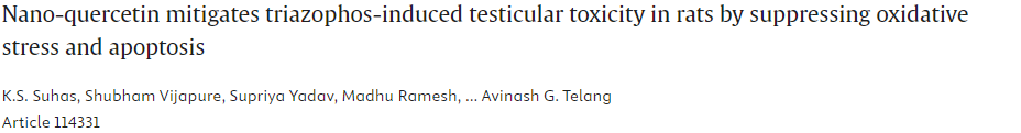 12.纳米槲皮素通过抑制氧化应激和细胞凋亡减轻三唑磷诱导的大鼠睾丸毒性