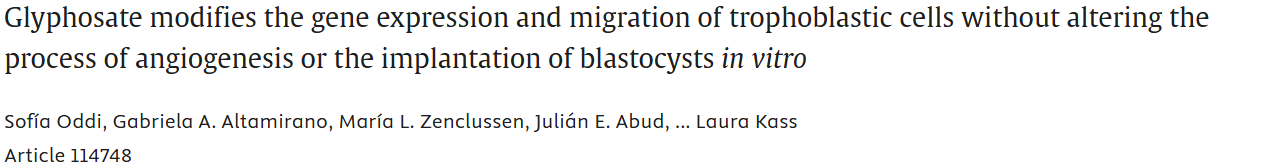 概述:使用体外模型发现,草甘膦可干扰滋养层细胞的基因表达和迁移,但不影响血管的生成和胚泡植入过程。