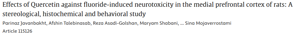 概述:评估槲皮素对氟暴露大鼠前额叶皮层神经毒性的干预作用,揭示槲皮素可通过抗氧化途径减轻氟诱导的神经元损伤并改善认知功能。