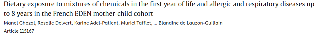 9.生命早期膳食化学物混合暴露与儿童过敏及呼吸系统疾病的关联研究:基于法国EDEN母婴队列的追踪分析