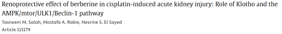 10.黄连素可保护顺铂诱导的急性肾损伤:Klotho蛋白及AMPK/mTOR/ULK1/ Beclin-1通路的调控机制