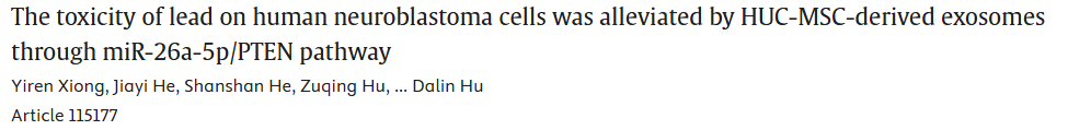 12.人脐带间充质干细胞外泌体通过激活miR-26a-5p/PTEN通路减轻铅诱导的神经母细胞瘤细胞毒性研究