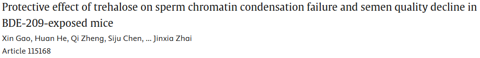 概述:海藻糖可通过抑制氧化应激与调控组蛋白修饰,改善十溴二苯醚(BDE-209)暴露诱导的小鼠精子染色质凝聚异常及精液质量下降。