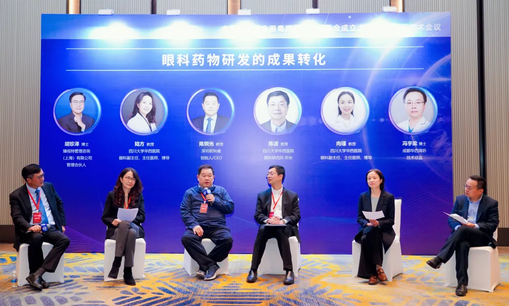 圆桌会议之 “产学研融合:眼科创新生态体系的布局与构建” 专场,由胡珍泽博士主持,邀请到陆方教授、陈烱光教授、陈波教授、向瑾教授、冯宇梁博士针对产学研合作痛点、创新资源对接机制、科研成果落地路径等问题交流探讨,探索推动眼科创新生态体系建设的有效路径。两场会议现场讨论氛围热烈,形成多项具有实践意义的共识。